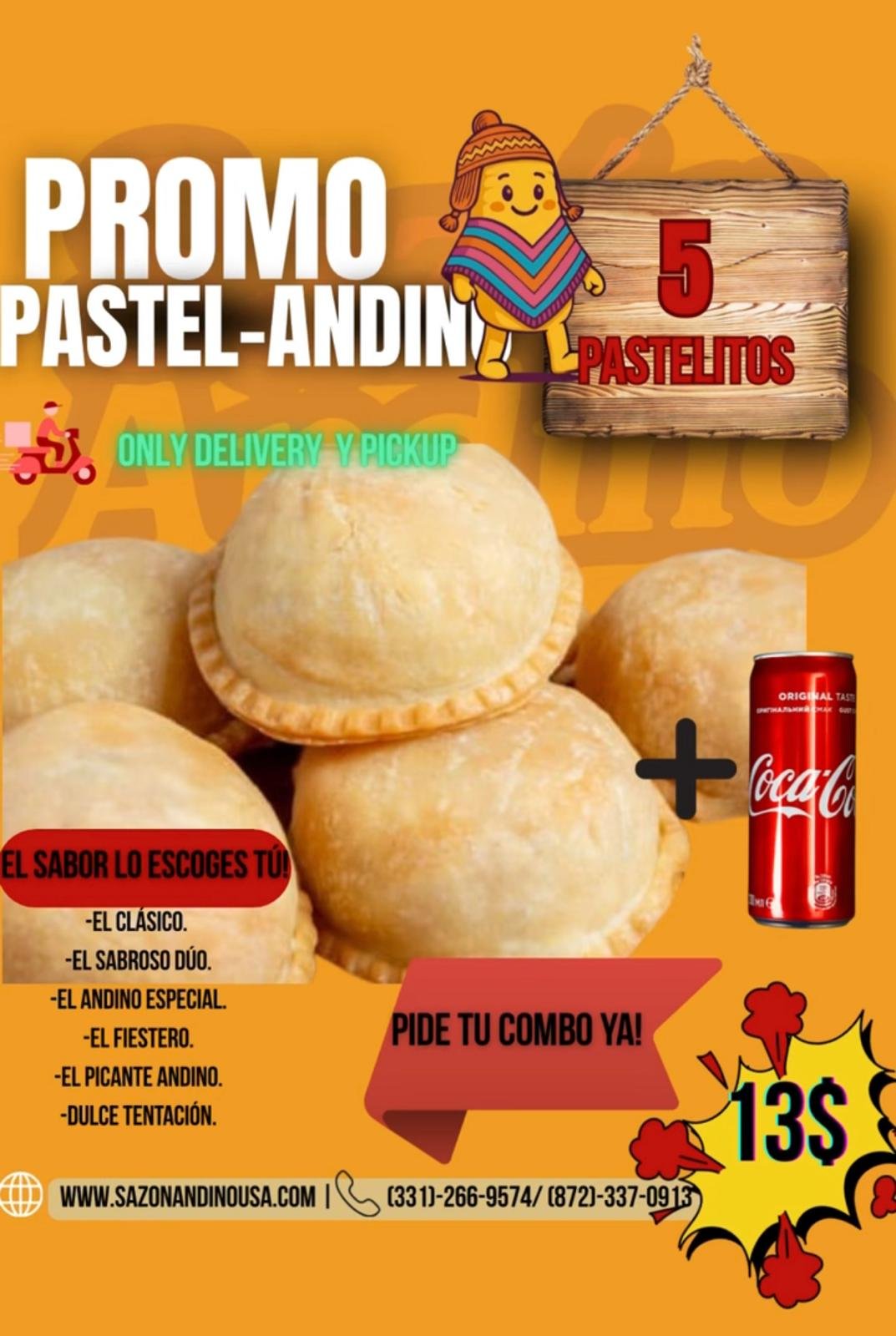 5 PASTELITOS MIXTOS CON UNA RICA COCA-COLA FRÍA